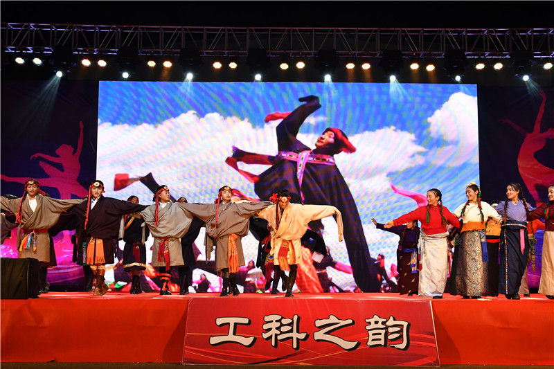 晚会中,十二个异彩纷呈的文艺节目,为在场师生带来了一场视听盛宴。舞蹈《我爱中国》《炫酷青春》《织彩》等秀出信仰和青春活力;萨础拉带来悠远蜿蜒、直抵内心的歌曲《鸿雁》,清澈的嗓音和呼麦演绎出乡愁、成长,以及用力的遥望未来;《盖碗茶》《花妖邵多丽》更是赢得师生一致好评;体育技能展示《百花齐放醉校园》散发青春的荷尔蒙,再一次将晚会推向高潮,整场晚会在气势磅礴的大合唱《一路高歌创辉煌》与热血沸腾《爱我中华》和燃放绚丽的烟花中落下了帷幕。