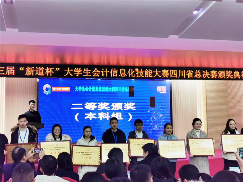 经层层角逐,我校2支代表队在27支参赛队伍中脱颖而出,最终均斩获第十三届“新道杯”大学生会计信息化技能大赛四川总决赛二等奖。同时王澍、高冬梅两位指导教师荣获“优秀指导老师奖”。