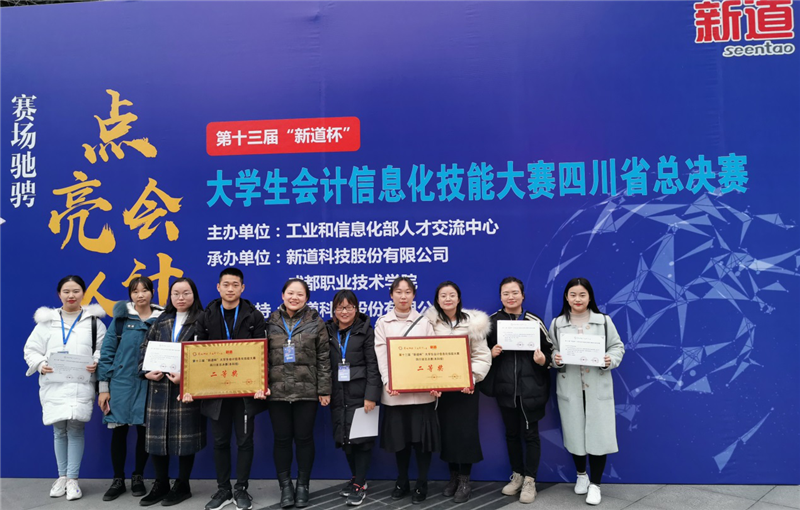 12月7日,第十三届“新道杯”大学生会计信息化技能大赛四川总决赛在成都职业技术学院举行,我校财经学院高冬梅和王澍老师带领财经学院财务管理专业2支学生队伍参加了比赛。