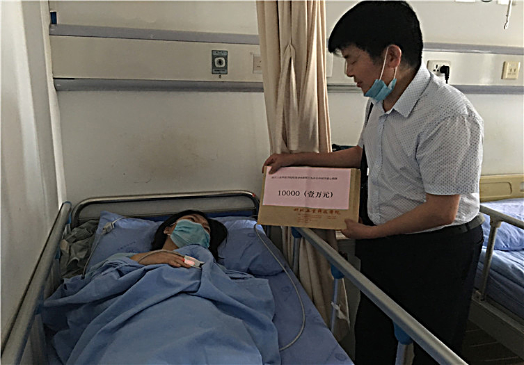在得知冷长玲同学不幸患病的消息后,学校党政高度重视,立即组织相关教师前往冷长玲同学所在医院探望,学校工会于5月31日中午发出了紧急倡议,号召全校教职员工伸出援手,向冷长玲同学献上一份爱心。倡议发出后,各党总支、党支部,全体校领导和教职工迅速行动,积极捐款,在短短4个小时里,共筹集到捐款一万元。下午6时,财经学院院长卢淑梅,学校党委组织部部长、工会副主席邓成奉,党委学工部部长杨朋,党委宣传部副部长罗岚兰以及辅导员王元宏一行抵达德阳市人民医院,将紧急筹集的壹万元捐款送到了冷长玲同学手中,并送去了学校的祝福和关怀。同时,学校也将进一步做好动员和倡议,想方设法为冷长玲同学排忧解难。