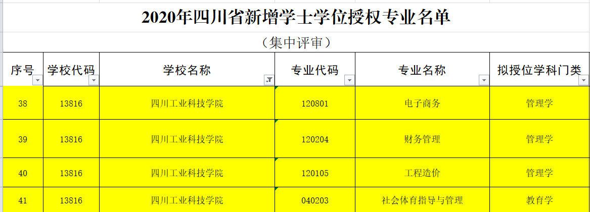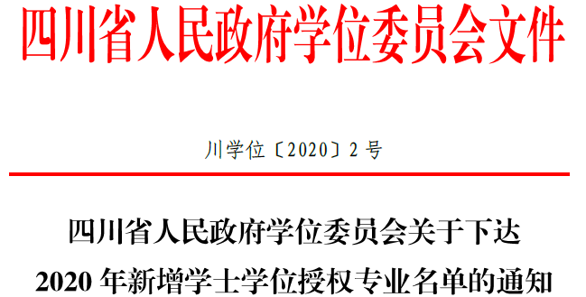 昨日,四川省人民政府学位委员会公布了2020年新增学士学位授权专业名单,我校电子商务、财务管理、工程造价、社会体育指导与管理4个专业获得学士学位授予权,截止目前,我校学士学位授权专业达到12个。