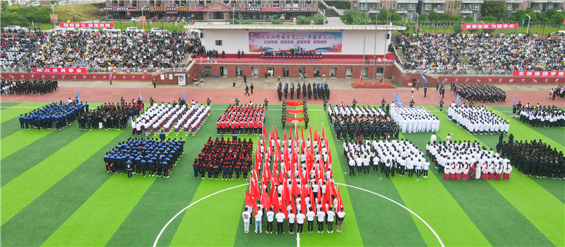 伴随激昂的《运动员进行曲》,学校女子国旗护卫队、彩旗、裁判员、各二级学院代表方队依次昂扬走过主席台。