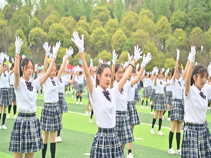 在开幕式上,学生进行了大型团体操表演。由教育学院、护理学院、财经学院等学院学子组成的表演方队带来了团队舞蹈、队列变换、才艺展示等表演,一展学子青春向上的昂扬英姿,赢得了与会观众的阵阵热烈掌声