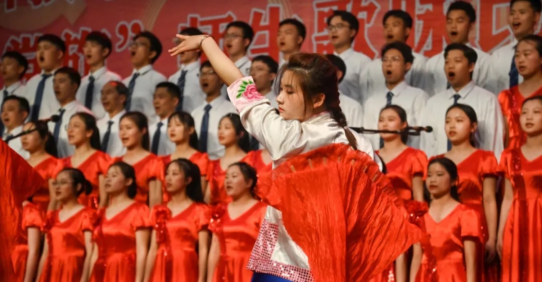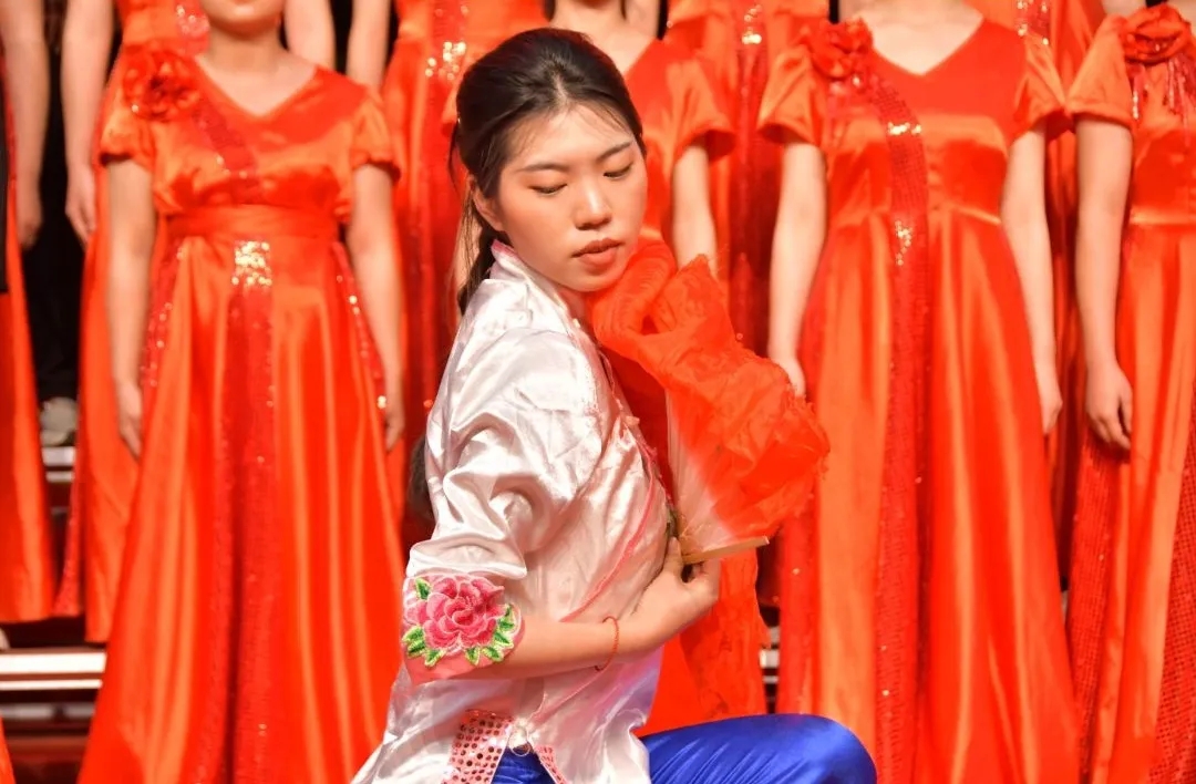 财经学院怀揣着对党的赤诚之心,为现场观众们带来《在灿烂的阳光下》和《红旗颂》;