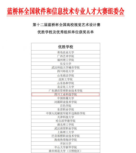 在本次比赛中,四川工业科技学院荣获“优胜学校”。本次比赛我校共8组选手获奖,其中二等奖4组,三等奖2组,优秀奖2组。