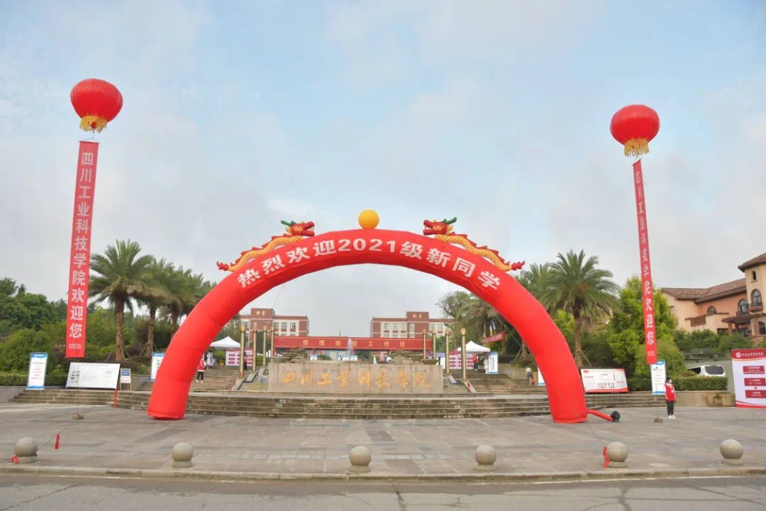 “四川工业科技学院欢迎您”,学校已准备就绪,新的旅程已经开启,静候你们的到来。