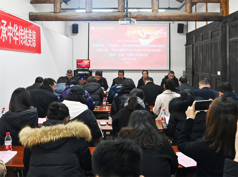 12月6日下午3:00,学校在四川省廉政教育基地范家大院召开党建、纪委、工会和妇联工作研讨会。