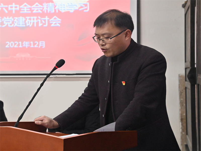 在工作研讨会上,党委组织部部长、纪委副书记卢尚东领学了党的十九届六中全会精神并对近期党建工作作了布置。