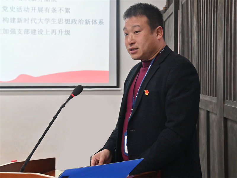 直属第四支部书记何林贵、体育学院党总支副书记魏天强、直属基础课教学部支部书记许敏分别就学习党的十九届六中全会精神作了经验交流发言。