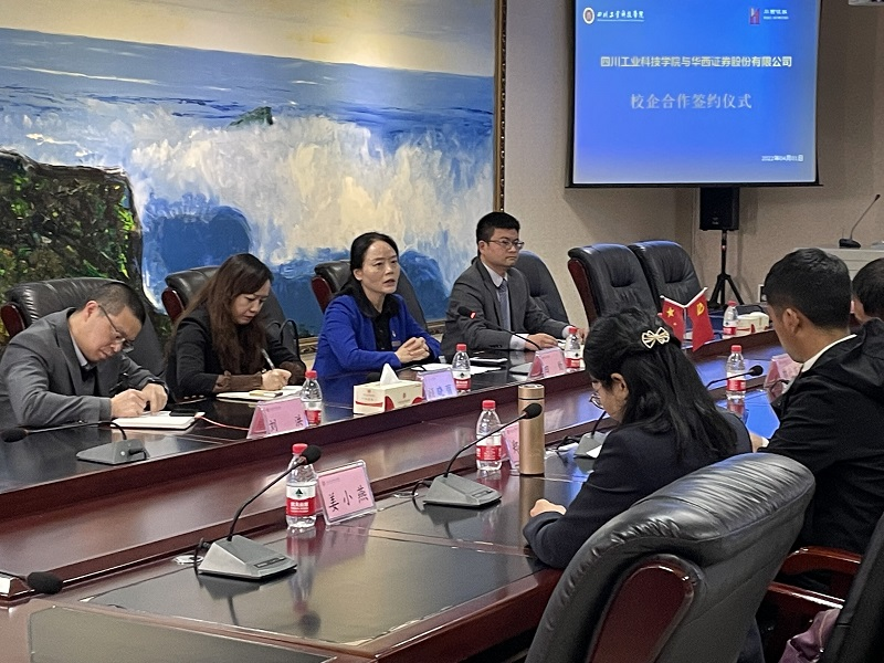 仪式上,魏顺泽对华西证券股份有限公司田均代表一行的到来表示了热烈的欢迎。郭桂萍介绍了学校的基本情况、人才培养模式和财经学院情况,她表示校企合作是高校和企业合作的良好模式,不仅能为企业提供新鲜血液,也能为学生找到稳定的实习平台。