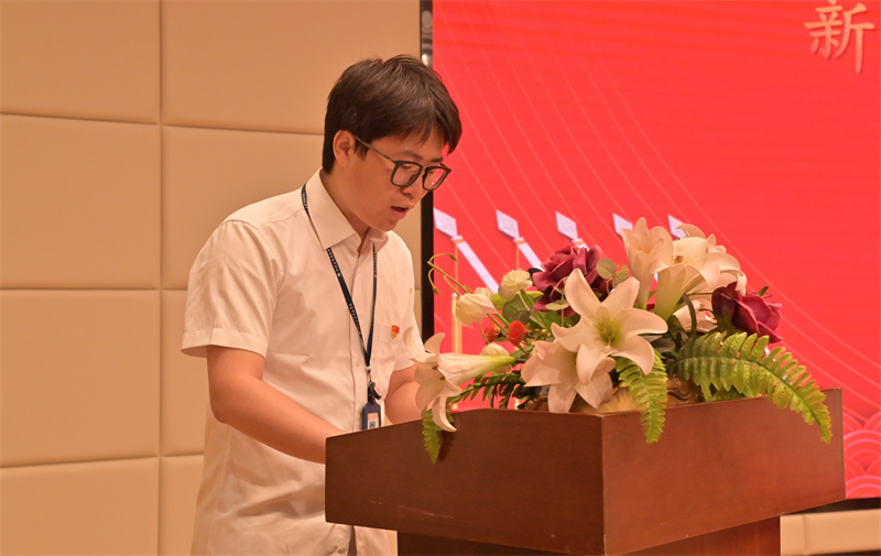 新党员代表智能制造与车辆工程学院老师黄瑞俊在大会上发言