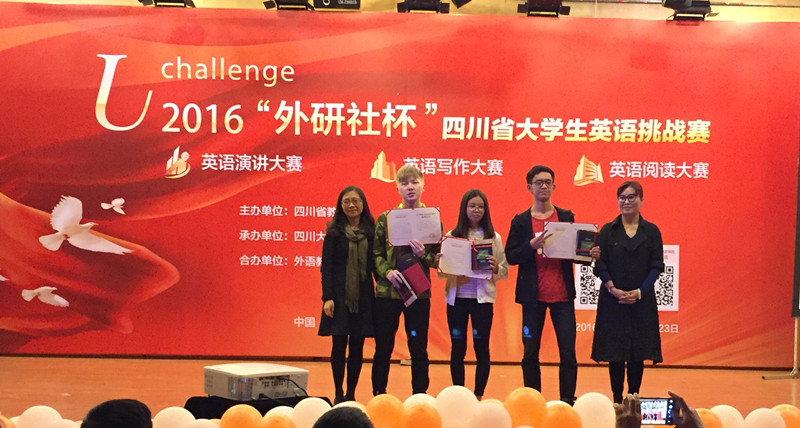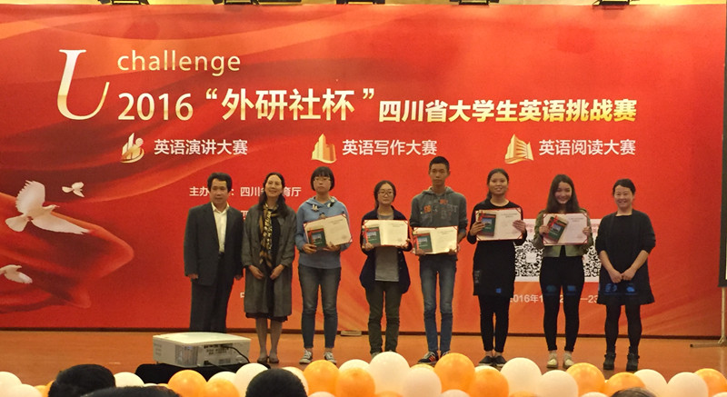 我校7名学子分别参加本科组的和专科组演讲、阅读、写作三项赛事的角逐,并获得了优异成绩。其中工商管理学院2015级商务英语1班段天浩以四川省第一名的成绩获专科组阅读大赛特等奖,财经学院2016级会计3班姜育苗获专科公共英语组写作大赛一等奖,工商管理学院2015级商务英语1班鄢静获专科组演讲大赛二等奖,工商管理学院2015级商务英语1班李佳慧获专科英专组写作大赛三等奖;交通学院2014级汽车服务工程2班代雨杭、工商管理学院2015级国际经济与贸易2班黄滢、旅游学院2015级旅游管理2班夏玉朋分别获本科组演讲、写作、阅读三项大赛的三等奖。