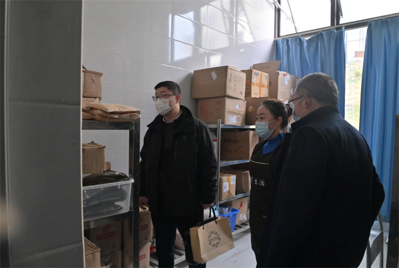2月23日上午,省教育厅基建后产中心副主任蒋鹏飞、食品安全科科长宋飞、食品安全科干部冯孟一行到校检查指导工作,学校副校长张仁志,副校长、食品安全总监黄斯欣及相关部门负责人陪同检查。