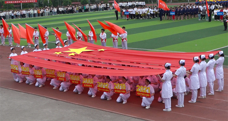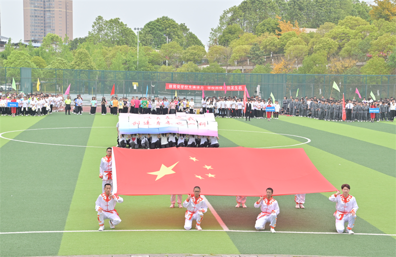 最后,由校团委组织、各学院师生参与编排表演的武术方队、尊巴健美操方队和红旗方队带来了一场精彩绝伦的文体表演,一展学子青春向上的昂扬英姿,舞出了川工科学子的青春活力,跳出了川工科学子奋勇拼搏、争创一流的追梦精神。