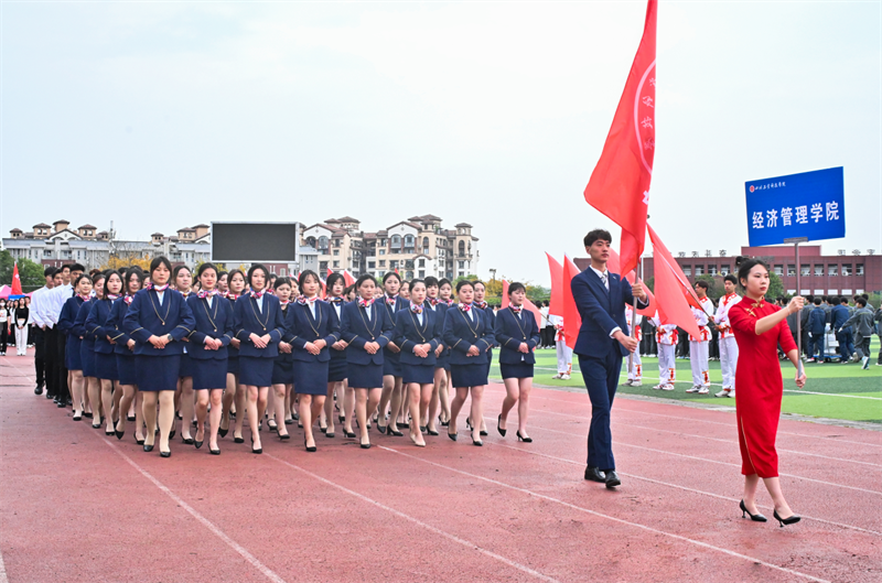 伴随激昂的《运动员进行曲》,国旗、校旗、会旗方队、彩旗方队、裁判员方队、各二级学院代表方队依次走过主席台,并结合学院特色给在场观众带来了精彩的表演。