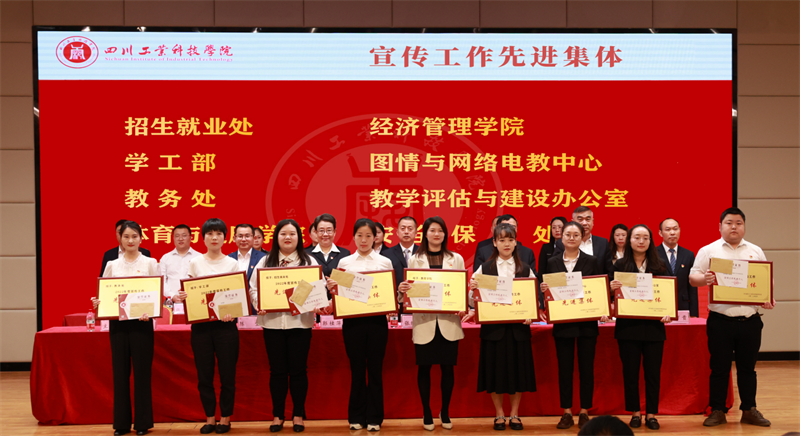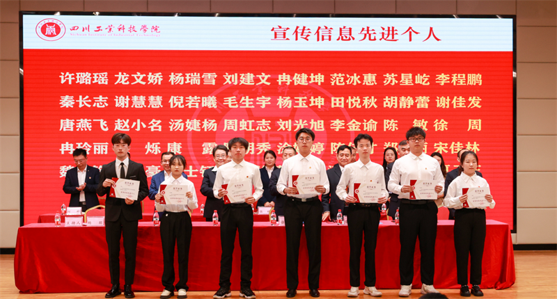 张仁志宣读了《中共四川工业科技学院委员会关于表彰2022年度宣传工作先进集体和先进个人的通报》,决定对招生就业处等9个宣传工作先进单位、华裔伊等9名宣传工作先进个人、许璐瑶等40名学生宣传信息先进个人进行表彰。与会校领导为宣传工作先进集体和个人颁发了奖牌和荣誉证书。