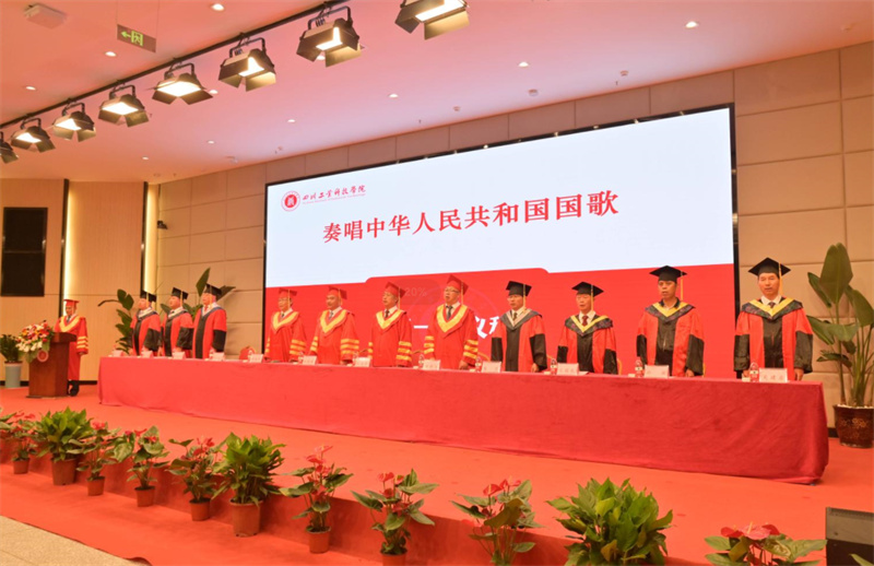 毕业典礼在雄壮的国歌声中拉开序幕。