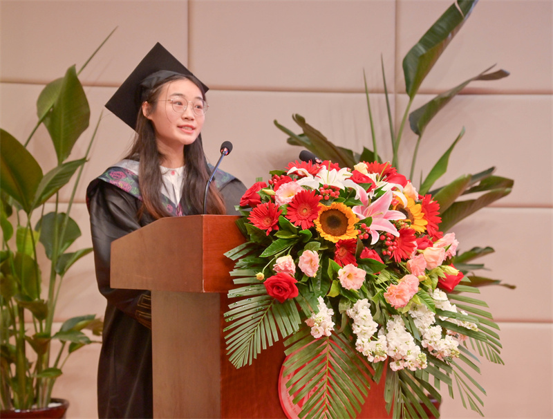 经济管理学院2019级毕业生代表吴焦向母校表达了浓浓的感激之情,并表示未来将秉持学校自强不息,止于至善的精神,将美好德操融进自己新的人生征途,将青春汗水挥洒在社会最需要的地方,不负自己,不负母校。
