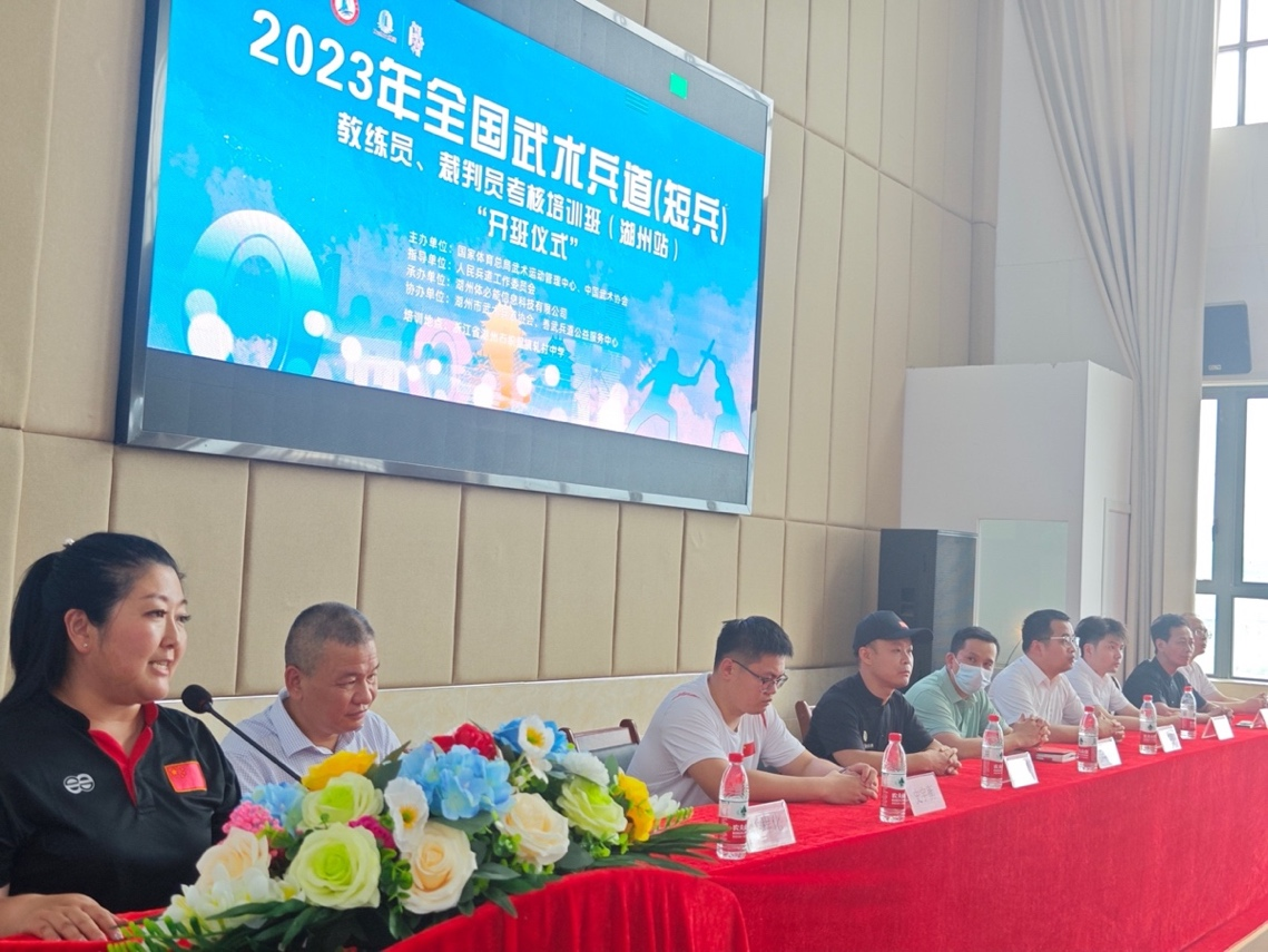 近日,由国家体育总局武术运动管理中心主办的全国武术兵道(短兵)教练员、裁判员考核培训班(湖州站)开班,学校师生受邀参加培训。