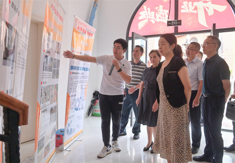 周新蓉一行实地考察了学校大学生创业智慧服务空间大学生创新创业示范街和毕业学生创业项目“921&瘦GO”健身馆,了解了学校的办学历程、学科专业设置等,听取了学校就业创业工作、大学生创业智慧服务空间建设和使用情况介绍。