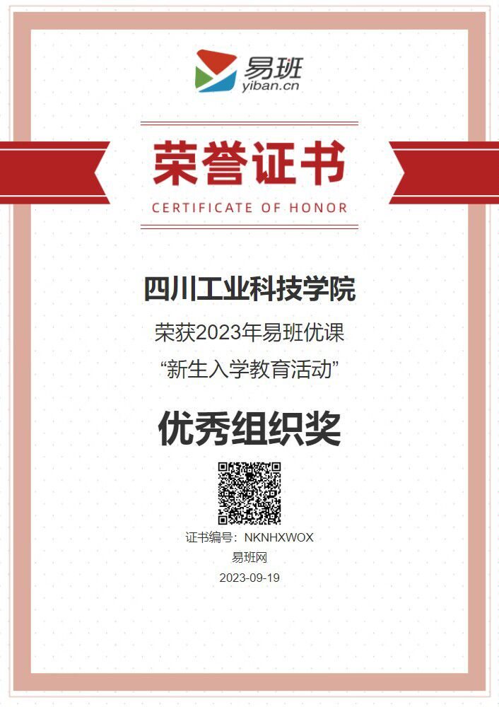 近日,从教育部易班网获悉,学校易班荣获2023年易班优课“新生入学教育活动”优秀组织奖,崔书磊、高渝林老师荣获优秀指导教师称号。