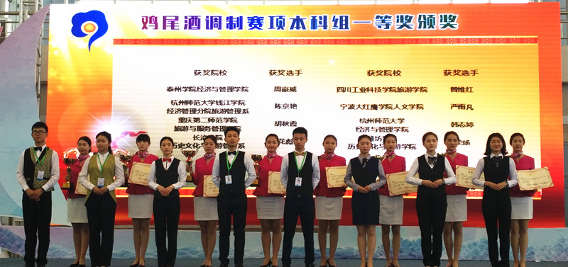 我校旅游学院选派了4名学生参与本次大赛全部赛项的角逐。每个赛项分别包括综合知识理论考核、英语水平测试和现场操作三个环节。其中,综合知识理论考核主要考察选手的专业理论基础知识及综合分析能力。英语水平测试主要考察选手的英语口语表达能力,选手与评委进行现场会话。现场操作环节,既要考察选手操作的熟练性、规范性,还要体现创新性、美观性。我校选手面对强强对手,沉着冷静,顶住压力,展现了扎实的基本功。最终,由杨朔、张勇、汪丹、伍娟4位教师分别指导的2014级酒店管理本科一班的曾维红获得鸡尾酒调制项目一等奖、2014级酒店管理本科一班的谌杨获得中餐摆台项目二等奖、2015级酒店管理本科二班的黄新芯获得西餐摆台项目二等奖、2015级酒店管理本科二班的邓翠莲获得中式铺床项目三等奖。