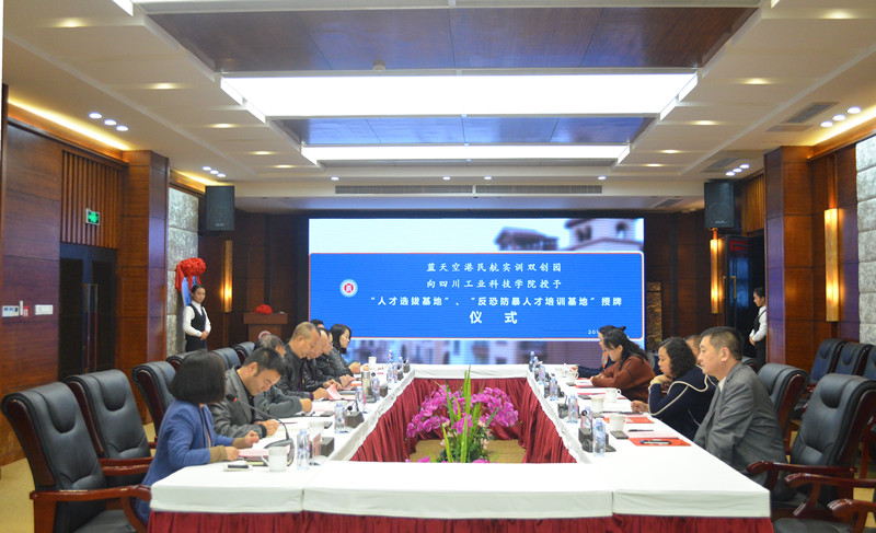 蓝天空港民航实训双创示范园是经有关部门批准,为我国民航公司专门培训中高级技术人才的示范园区,主要针对高校热爱民航事业的学子进行专业技术再培训,为民航公司培养输送合格人才。经过园区有关部门在全国各高等院校的认真筛选、评估、考察,最终选择我校作为蓝天空港民航实训双创示范园 “人才选拔基地”全国第三大基地以及全国首个“反恐防暴人才培训基地”基地。