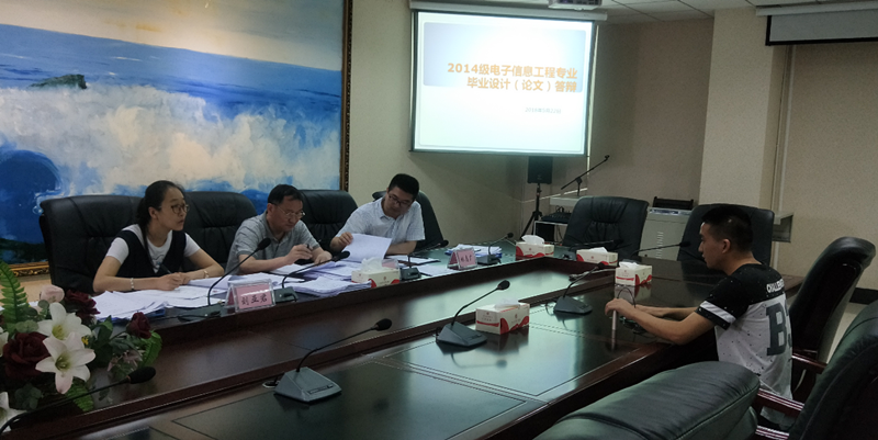 5月22至23日,电子信息工程学院举行了2018届电子信息工程专业毕业生答辩会。为确保答辩的公平、公正,在安排答辩小组成员时,严格执行指导教师回避制度。经过2天时间的答辩,学院2018届毕业设计(论文)答辩工作圆满结束。