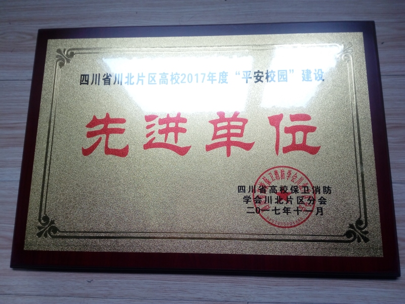 会上,省高教保卫学会、省高校消防协会对2016至2017年“平安校园”建设工作进行了总结,对先进单位进行了表彰。我校荣获川北片区高校“平安校园”建设先进单位称号, 2名保卫干部、5名安保队员以及3名学生也分别获得 “平安校园”建设先进个人称号。