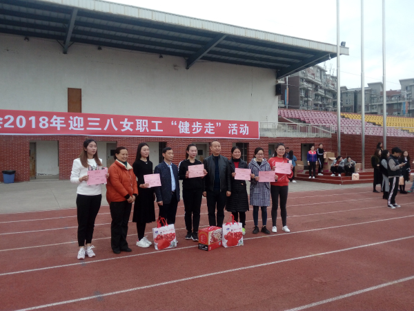 3月8日下午,为庆祝2018年“三八”国际劳动妇女节的到来,由校工会组织的迎三八女职工“健步走”活动在学校体育场举行。校党委书记魏崛、副书记马小红、副校长倪霞以及学校近200名女教职工参加了活动。