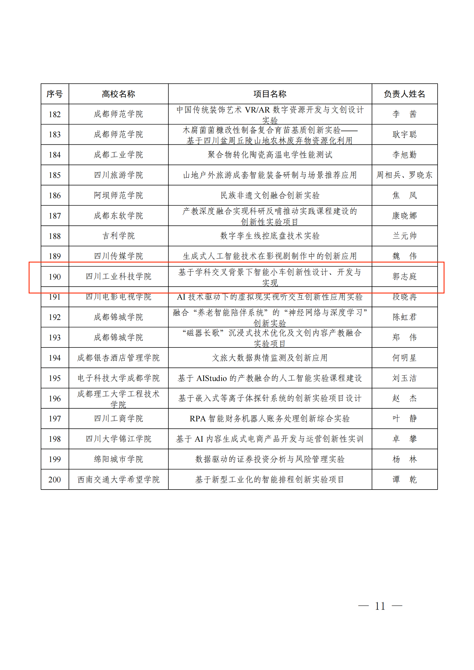 近日,四川省教育厅公布了2024年省级普通本科高校创新性实验项目名单,学校智能制造与车辆工程学院郭志庭老师《基于学科交叉背景下智能小车创新性设计、开发与实现》项目成功立项。