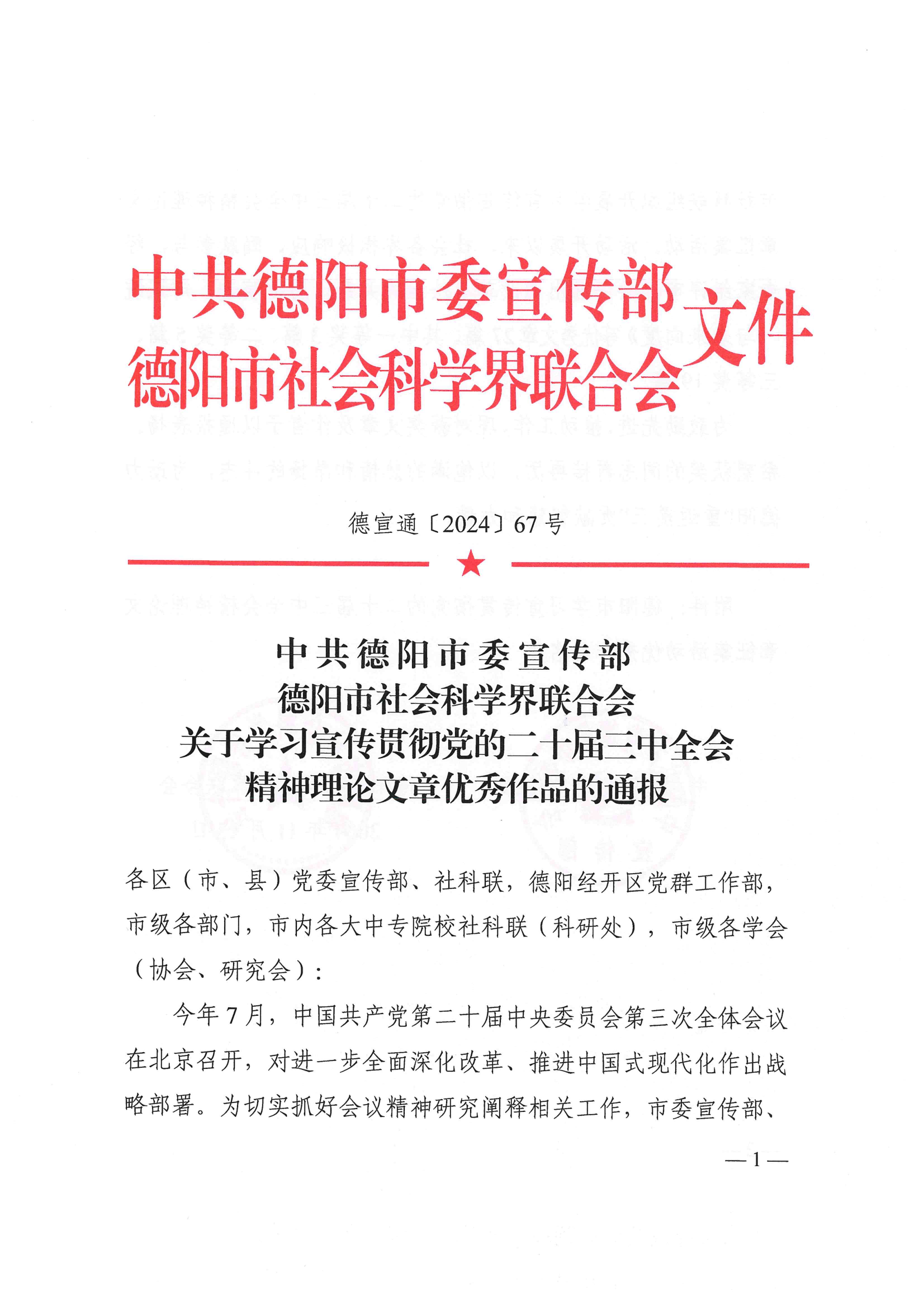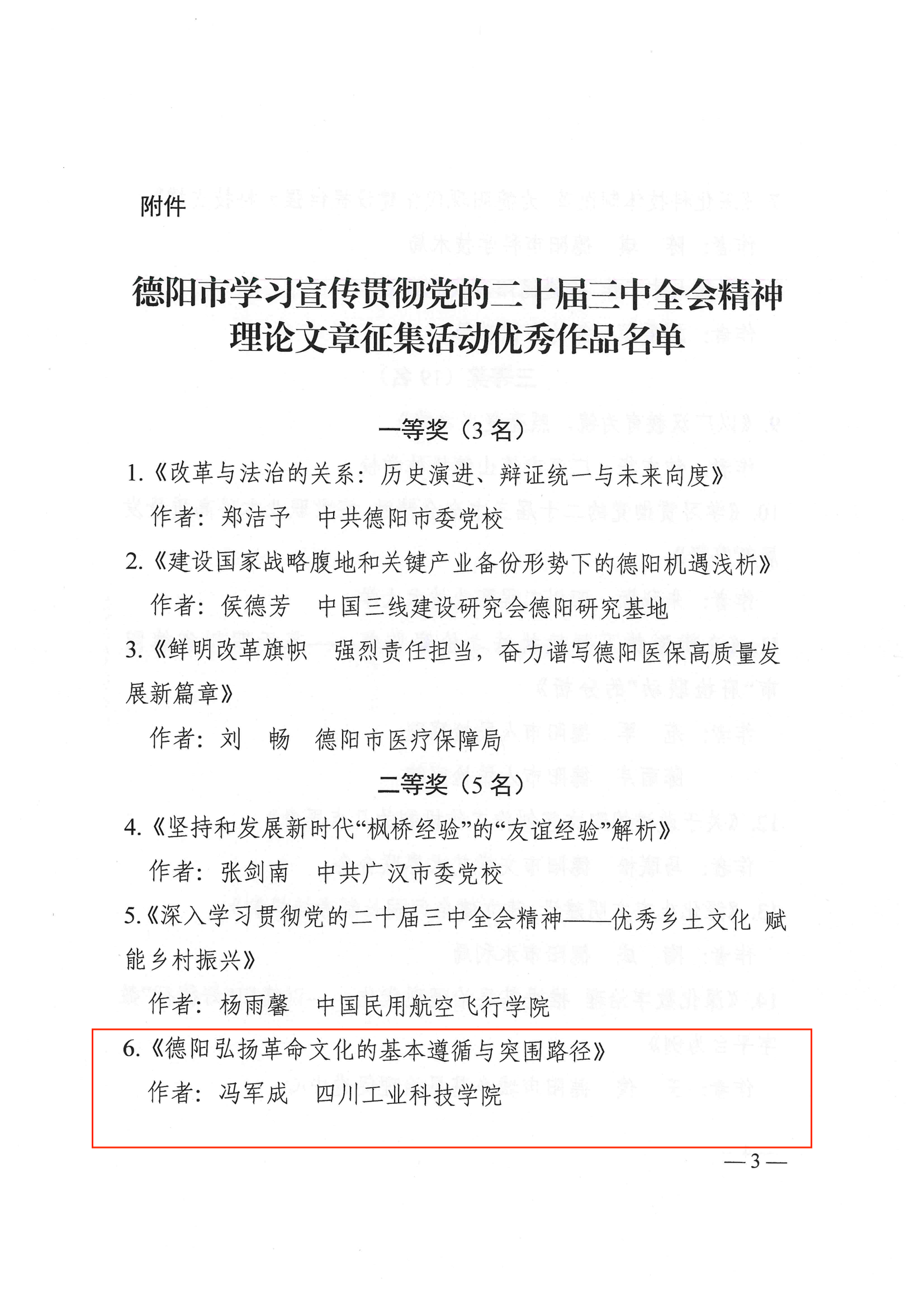 近日,中共德阳市委宣传部、德阳市社会科学界联合会公布了学习宣传贯彻党的二十届三中全会精神理论文章优秀作品的名单,学校冯军成老师荣获二等奖。