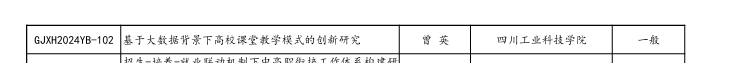 近日,四川省高等教育学会公布了2024年高等教育科学研究课题立项名单,学校电子信息与计算机工程学院曾英老师主持的课题《基于大数据背景下高校课堂教学模式的创新研究》项目成功立项。