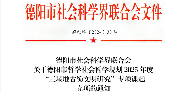 近日,德阳市哲学社会科学规划2025年度“三星堆古蜀文明研究”专项课题立项已发通知,学校王安一等4名老师主持的项目成功立项。