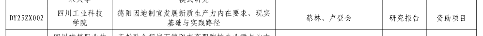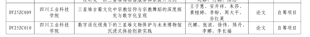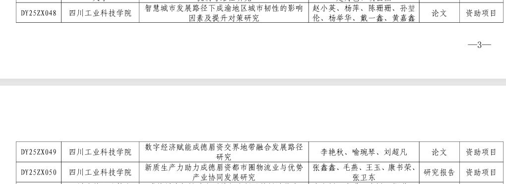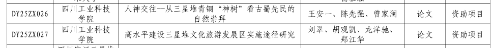近日,德阳市社会科学界联合会公布了德阳市哲学社会科学规划2025年度“成渝地区双城经济圈暨成德眉资同城化”“三星堆古蜀文明研究”“党的二十届三中全会暨省委十二届六次全会精神研究阐释”专项课题立项名单。学校赵小英、李艳秋、张鑫鑫老师在成渝地区双城经济圈暨成德眉资同城化专项课题中成功立项;王安一、刘翠、王子慧、代娜老师在三星堆古蜀文明研究专项课题中成功立项;蔡林老师在党的二十届三中全会暨省委十二届六次全会精神研究阐释专项课题中成功立项。