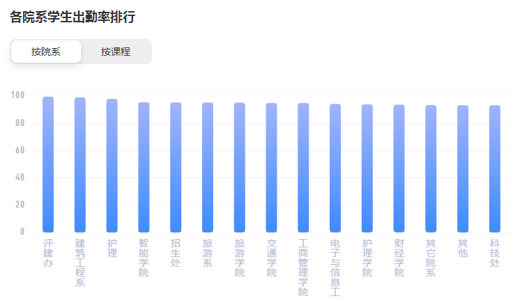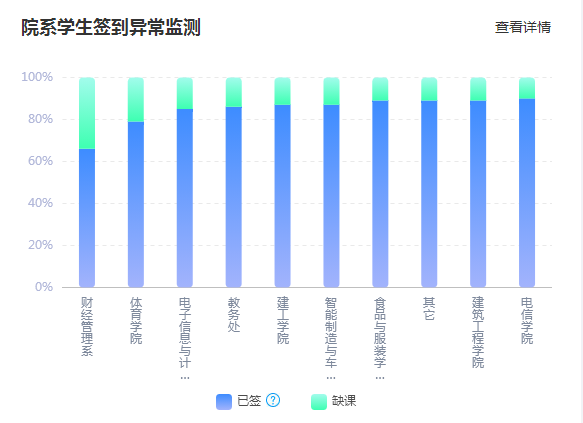 全校上周学生整体签到率为90.88%,环比提高9.54%,具体各院系情况如下,请各教学单位持续提高和完善学生签到率。