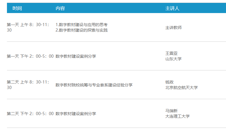 本次培训将围绕数字教材建设与应用思考、数字教材建设的探索与实践、数字教材建设内容资源案例分享等内容展开。