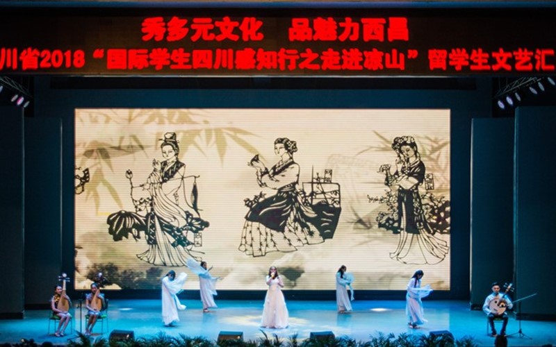 25日晚,我校国际学生受邀参演四川省首届国际留学生文化节文艺晚会,该晚会是四川省2018“国际学生四川感知行之走进凉山”系列活动之一,有全省10所高校不同风格的优秀作品在晚会中展出。我校参演作品为民乐歌武—《乐品四大名著》,本节目将经典的四大名著乐曲—《卧龙吟》、《葬花吟》、《天宫迅音》和《好汉歌》进行改编,以上音乐融合中国古典舞、太极扇、琵琶与中阮合奏、刀术、剑舞等表现形式,整个节目形式新颖、内涵丰富,体现了留学生对中华传统文化的深入思考与理解。