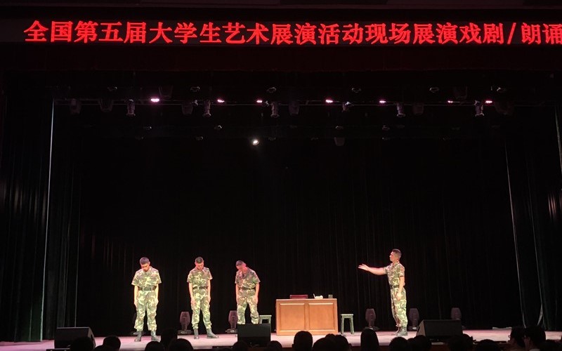 4月17日,表演团队不辞辛苦,充分利用有限的时间,反复推敲细节,力求做到最精最好。晚八点,学生们个个热情饱满、激情高涨,以最佳的状态闪耀登台。幽默诙谐,精彩动情的堪比专业化的表演博得了现场评委和全国各高校大学生们的热烈掌声,不少观众眼里还噙着激动的泪花,连声称赞,整个表演圆满顺利!我校戏剧小品《时刻准备着》作为全国唯一一个学生军训国防教育题材参展节目,受到了领导、评委和各参演高校的一致好评!