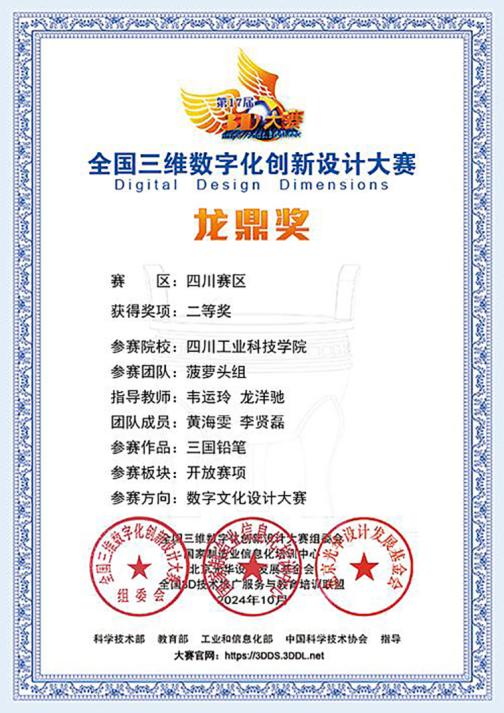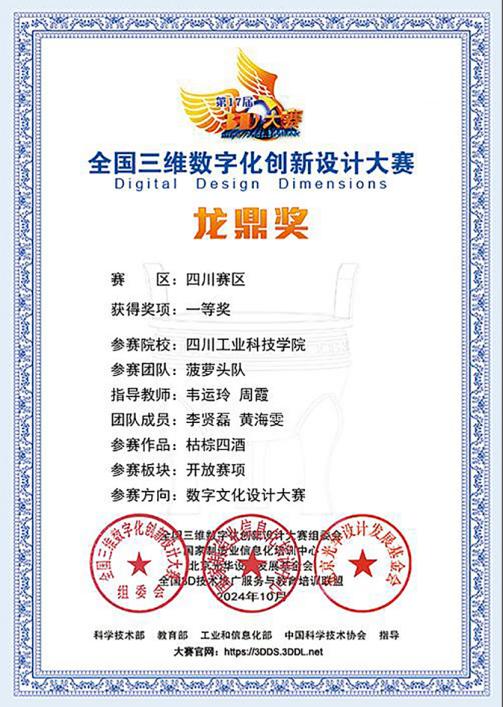 近日,第17届全国三维数字化创新设计大赛评审结果公布,学院学生的10件参赛作品入围省赛,经过激烈的角逐,获评省级一等奖1项、二等奖1项、三等奖4项。