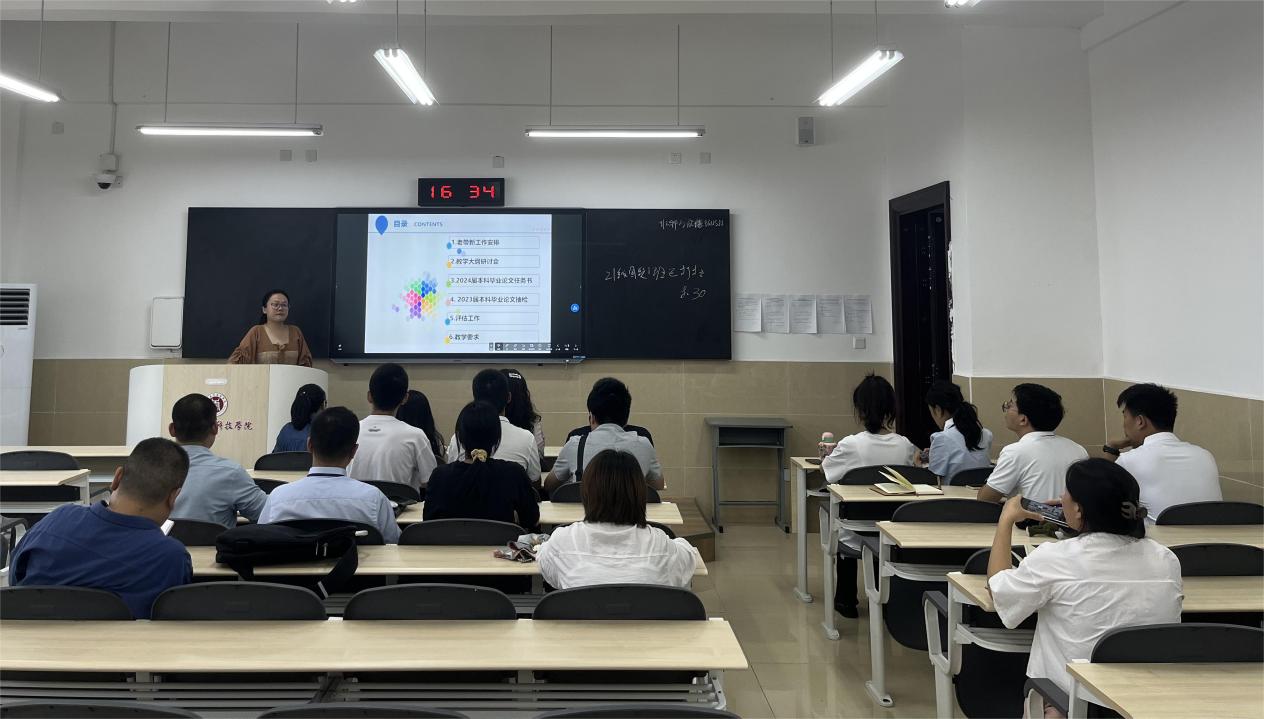 土木工程系副主任卢静翕老师做本系整体工作安排。一是持续落实“老带新”制度,充分发挥老教师对新教师的“传、帮、带”作用,促进新教师迅速成长;二是深化“三全育人”理念,落实课程思政要求,加强学生思想政治教育,做好协同育人工作;三是做好2023届毕业论文抽检准备工作和2024届毕业生论文开题工作,要求各位老师认真按照学校的相关要求,对2023届毕业生论文进行再次检查、整理和归档,同时做好2024届毕业生论文指导工作,按时保质保量完成相应工作要求。