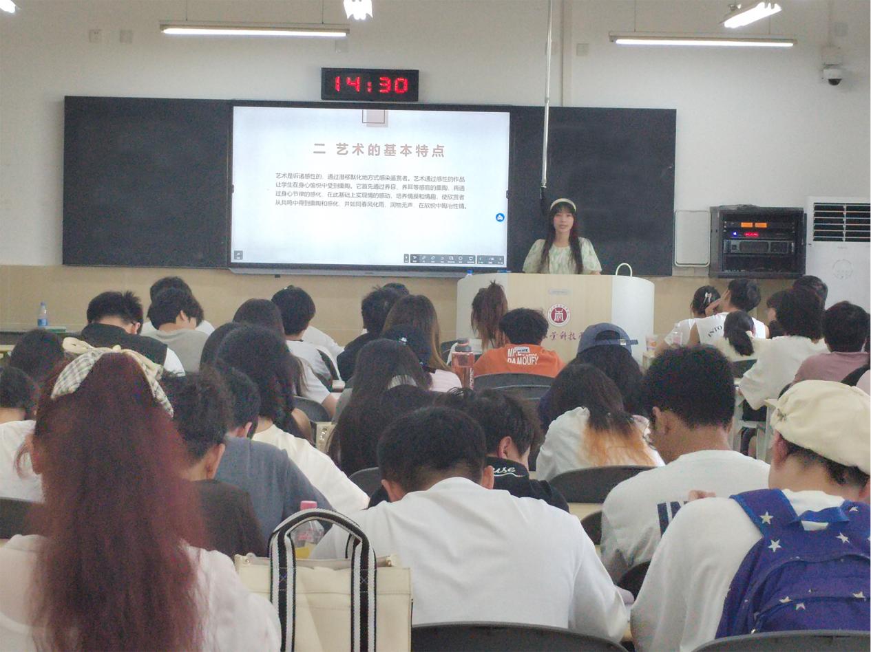 讲座以“什么是艺术”作为切入点,围绕模仿说、游戏说、劳动说、巫术说、情感表现说对艺术起源进行解读,结合视频、音频、历史等元素向学生介绍了艺术起源的相关内容。