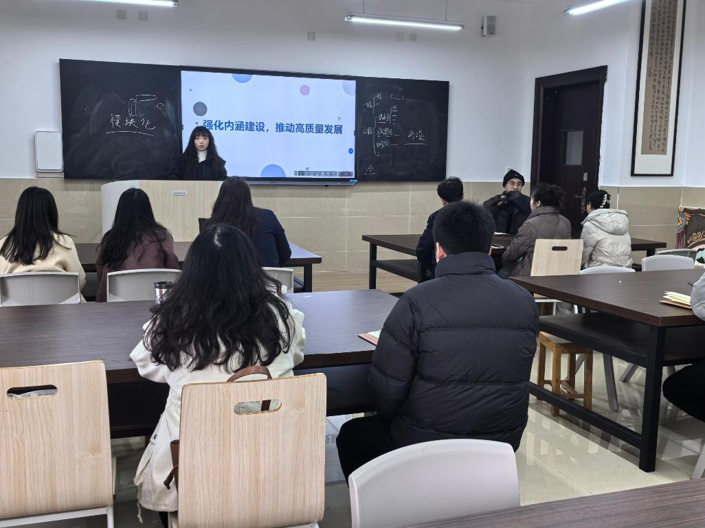 会议围绕艺术设计系内涵建设的核心议题展开深入研讨。会上,严思雨提出教师应以课程建设为核心,深入推进课程思政,争取打造一流课程。同时,鼓励教师参与教学创新大赛,提升教学水平,并指导学生在已参加的设计竞赛的基础上,积极参加其他设计类竞赛,通过竞赛实践促进教学相长。与会教师就“以赛促教、以赛促学”的教学理念达成共识,积极响应学校号召。此外,龙洋驰还与全体教师共同讨论在人工智能时代的科研发展方向,鼓励大家积极投身科研项目,提升科研能力,为学科发展注入新动力。