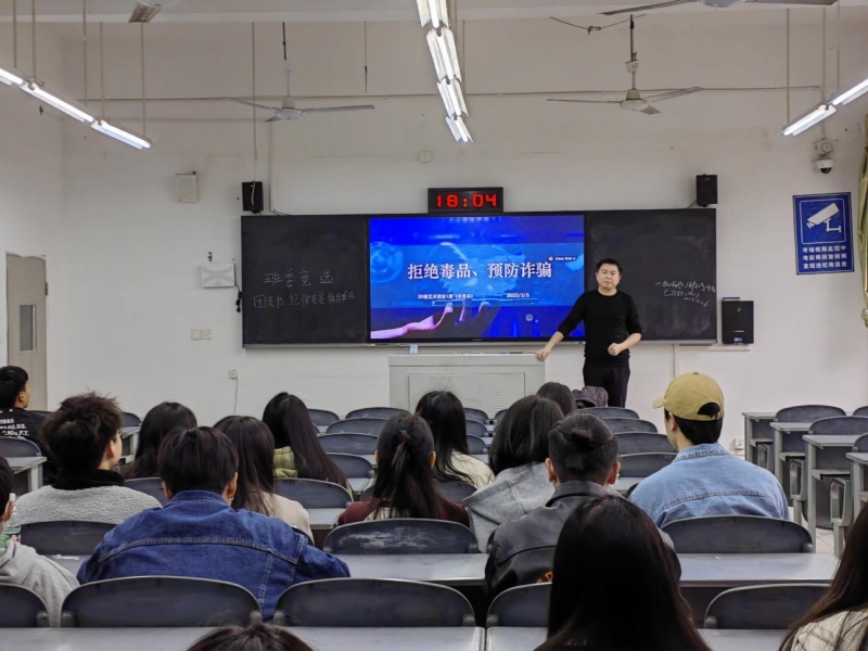 我院各班级通过主题班会结合工作实际,学习观看防毒禁毒视频、图片等多种形式进行相关内容的讲解和宣传,让学生认识毒品的危害、涉毒违法犯罪的法律责任等知识,让学生真正懂得“吸毒一口,掉入虎口”的道理,强化学生防毒意识。另外,从高校校园诈骗的情况、现状、高发案件类型说起,结合实际案例让同学们了解电信网络诈骗的常见手段和方式,提高自己的防骗安全意识,同时也呼吁全体学生抵制参与电信网络诈骗,保护个人隐私安全,严防贪图便宜发生“帮信”犯罪行为。