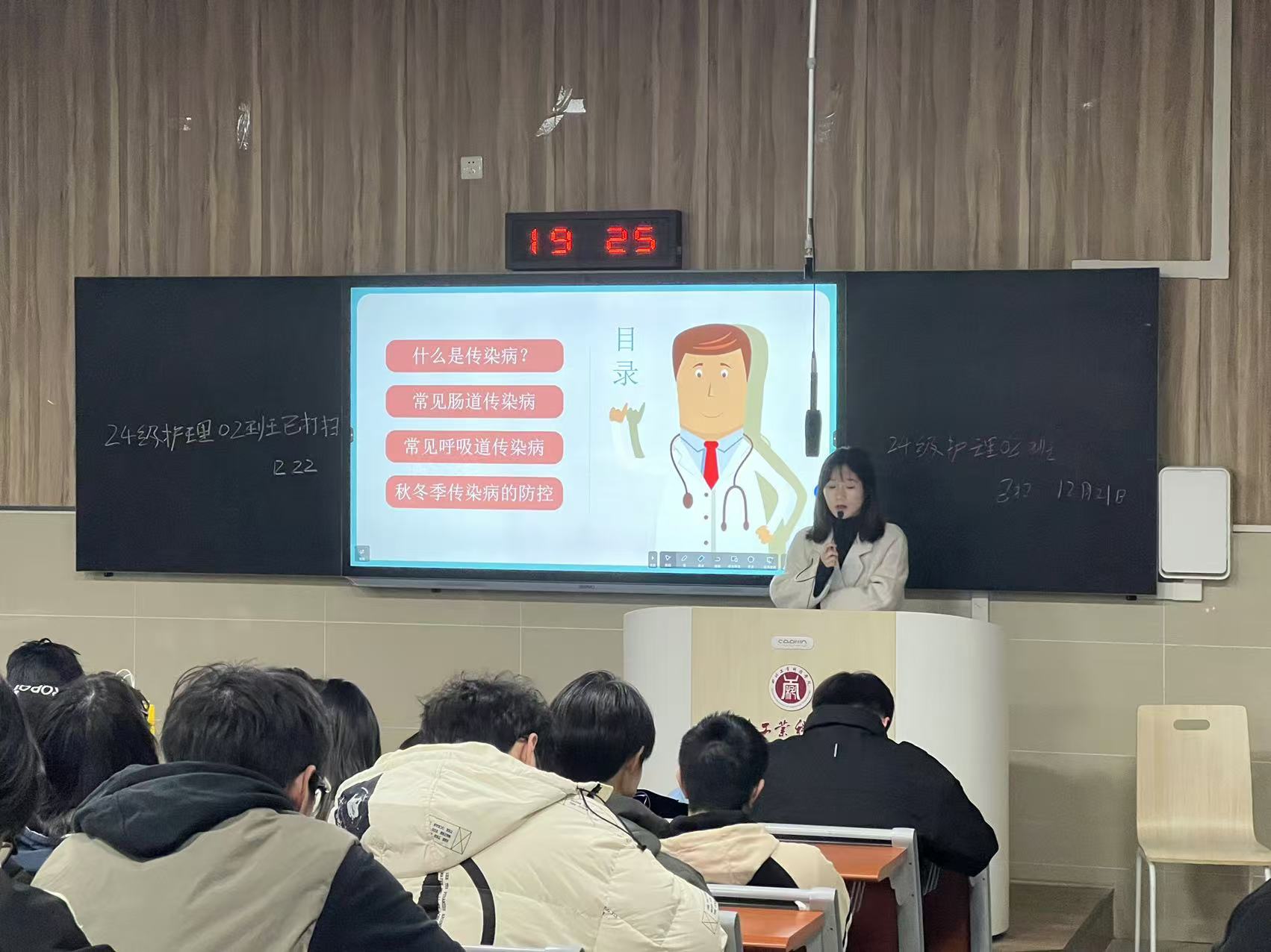 班会中,各班辅导员通过图文并茂的PPT展示,生动形象地表现了这些传染病的发病症状和特点,让同学们对传染病有了更直观的认识,了解了呼吸道传播和接触传播的隐蔽性及普遍性,强调了在人员密集场所佩戴口罩的重要性,并提醒同学们注意个人卫生,避免用手触摸口鼻眼等部位,防止病菌侵入。最后,针对冬季传染病高发提出了一系列预防措施,如加强体育锻炼,增强体质;保证充足的睡眠,养成良好的作息习惯;合理饮食,摄入足够的营养以抵抗疾病;定期开窗通风,保持室内空气新鲜;勤洗手,养成良好的卫生习惯。