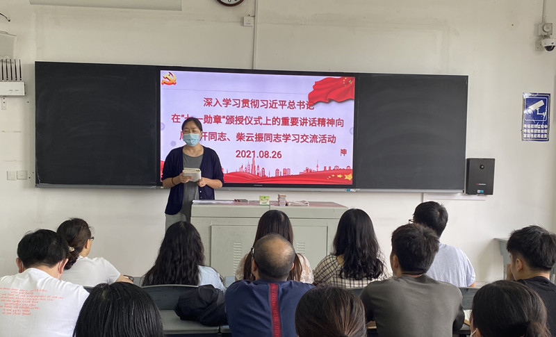 826日,建筑工程学院党总支组织学院教师深入学习习总书记在“七一勋章”颁授仪式上的重要讲话精神,部署开展向周永开、柴云振同志学习活动。学院党总支副书记杨春主持学习会。