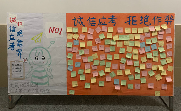 诚信乃立人之本,作为一名大学生更要恪守诚信、选择诚信、崇尚诚信,坚持实事求是。建筑工程学院秉持着“千教万教,交人求真;千学万学,学做真人”的理念,向青年学生传授“手握诚信之笔,书写高尚考风”的信念,促进学院良好考风、学风的形成。
