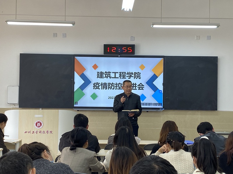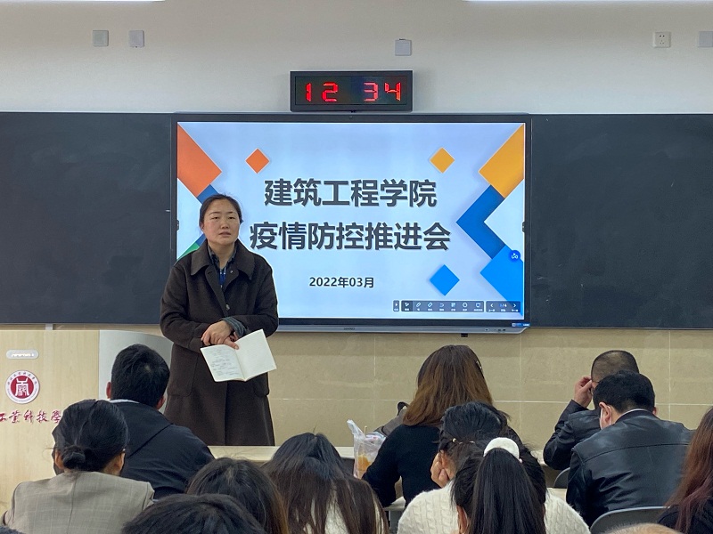 2022年3月15日,在龑江学村C410召开建筑工程学院疫情防控推进会,建筑工程学院全院教职工参加会议,学院党总支副书记杨春主持,院长陈堂召开。