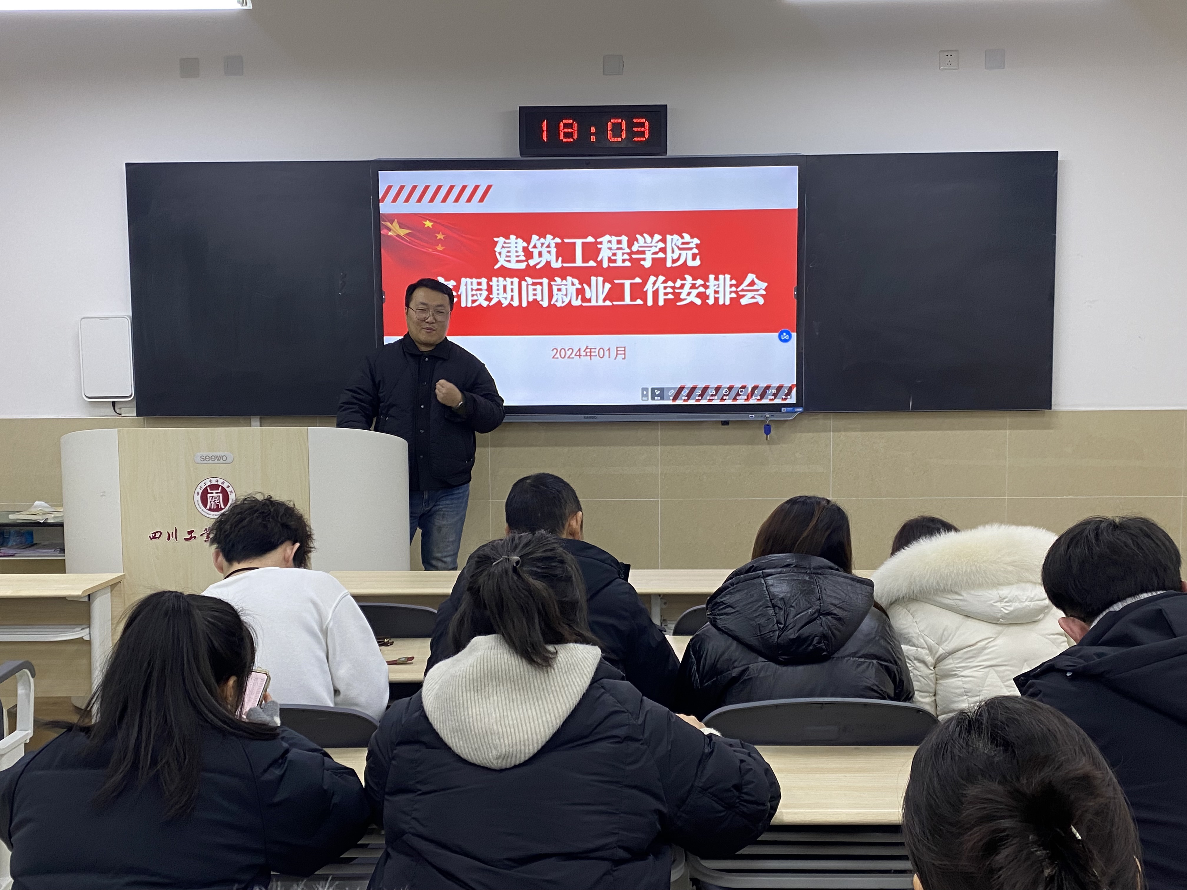 为深入贯彻执行学校关于春节与寒假期间就业工作相关安排部署,提前谋划就业工作,切实把握节后春季招聘关键节点,实现学院2024届毕业生充分就业,我院于1月5日下午在龑江学村C411组织召开寒假期间就业工作安排会。党总支副书记、学工办副主任、就业干事以及全体2024届毕业班辅导员参加。党总支副书记主持会议。