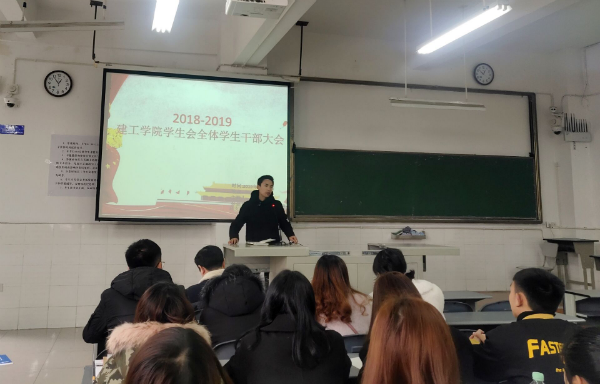 2月28日,建筑工程学院2018-2019学年度第二学期学生干部会议在毓秀楼101室召开。建工学院教师蔡明、江春雷及学院团总支学生会全体成员参加会议。